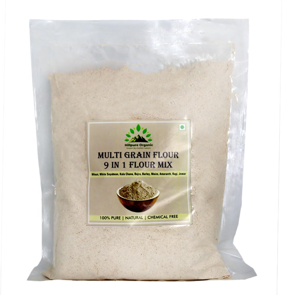 Hillpure Organic Multi Grain Flour 9 in 1 Flour Mix, Diabetic Friendly,Clinically Certified, Multigrain Atta for entire family (1 Kg)