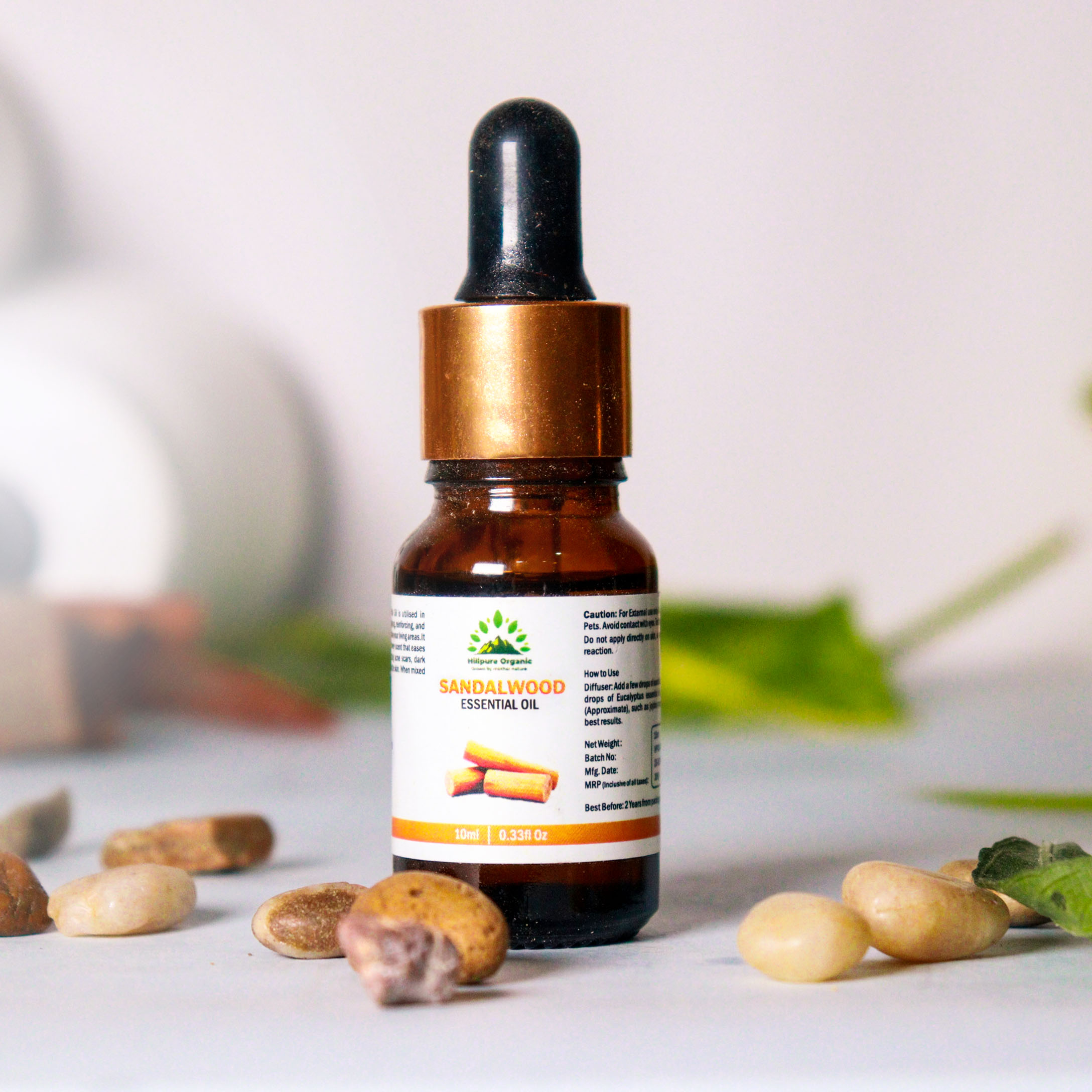Hillpure Organic Sandalwood Essential oil | Chandan Oil | 100% pure and natural | undiluted for skin moisturization, anti aging, healthy scalp and hair | 10 ml