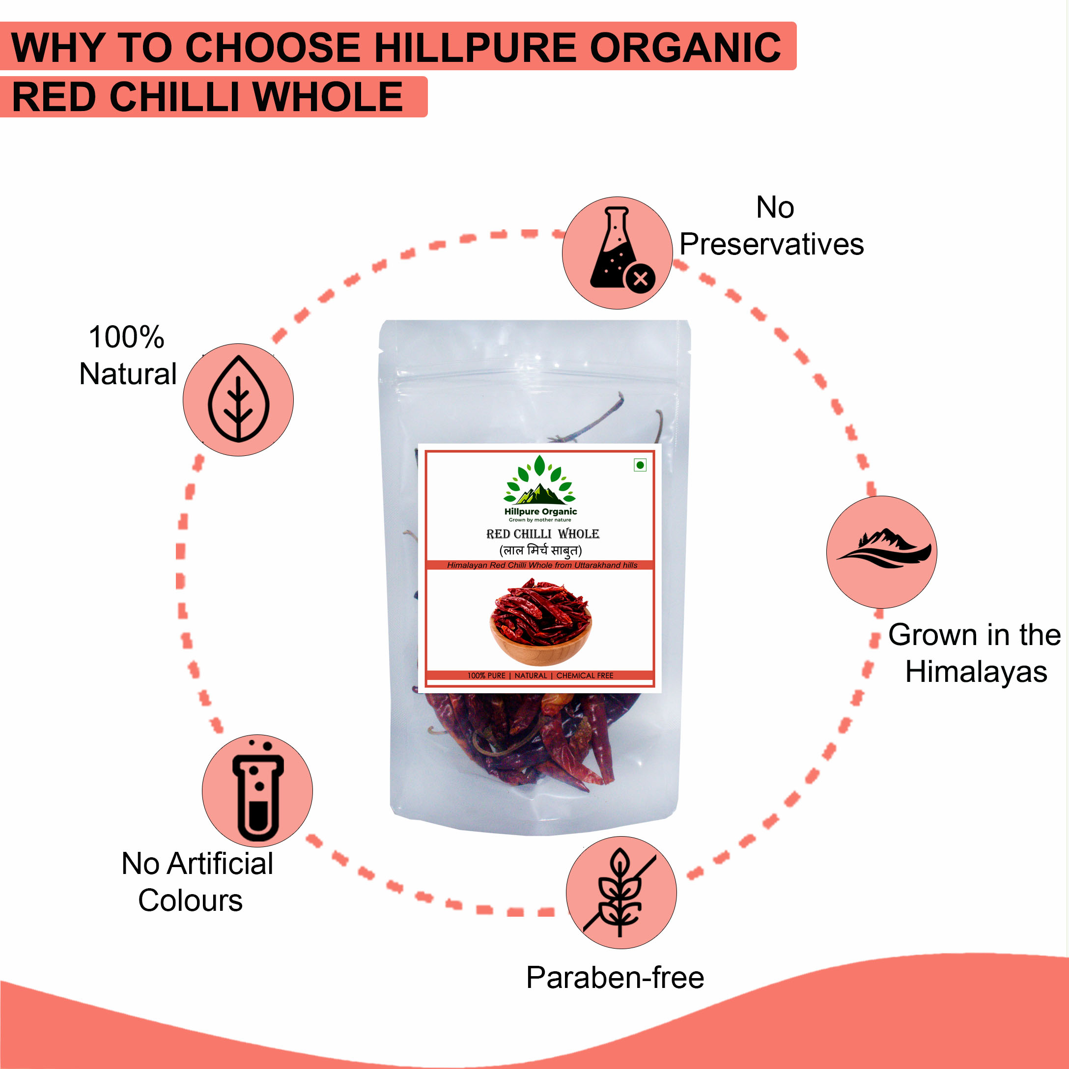 Hillpure Organic Whole Red Chilli | 100 gm | Sabut Laal Mirch | Himalayan Whole Chilli | Whole Spices
